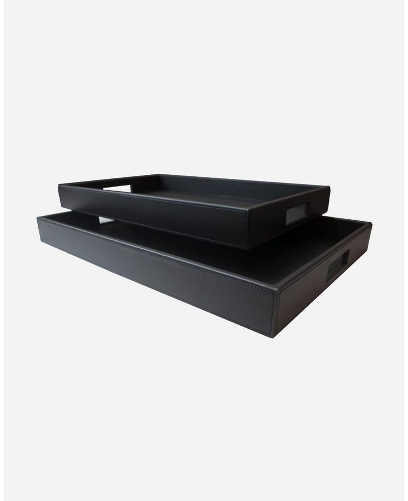 DecoraçãoBandejasbandeja grande preta com pesponto preto