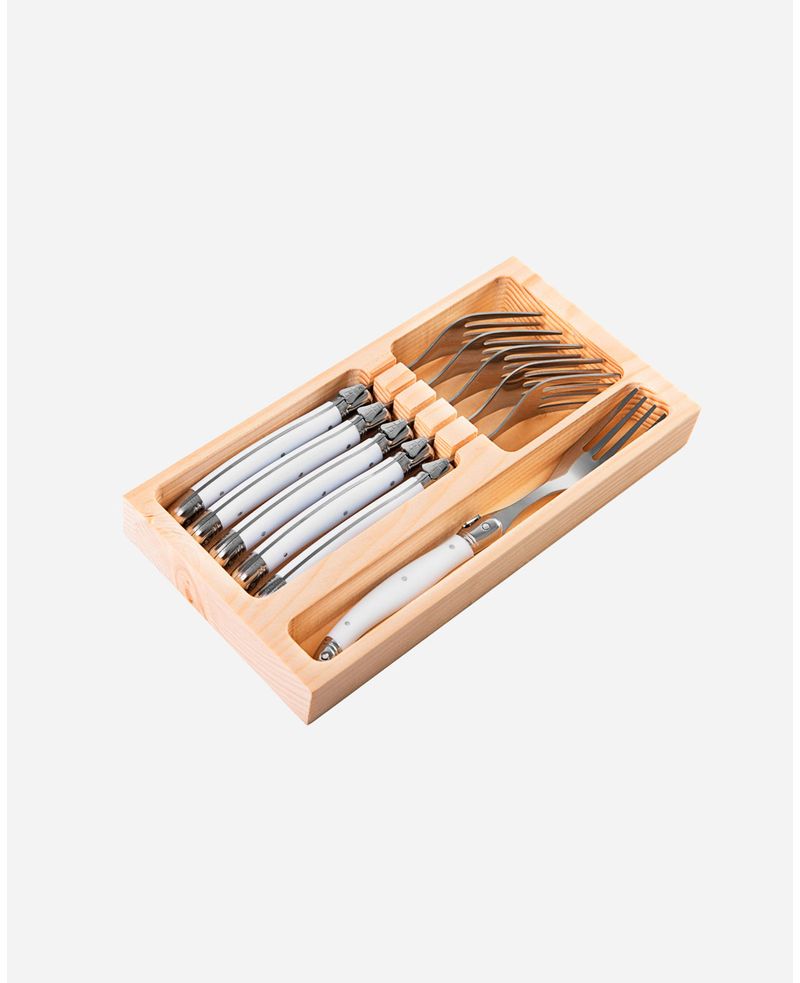 conjunto de 6 garfos com bandeja laguiole la tour luxo branco