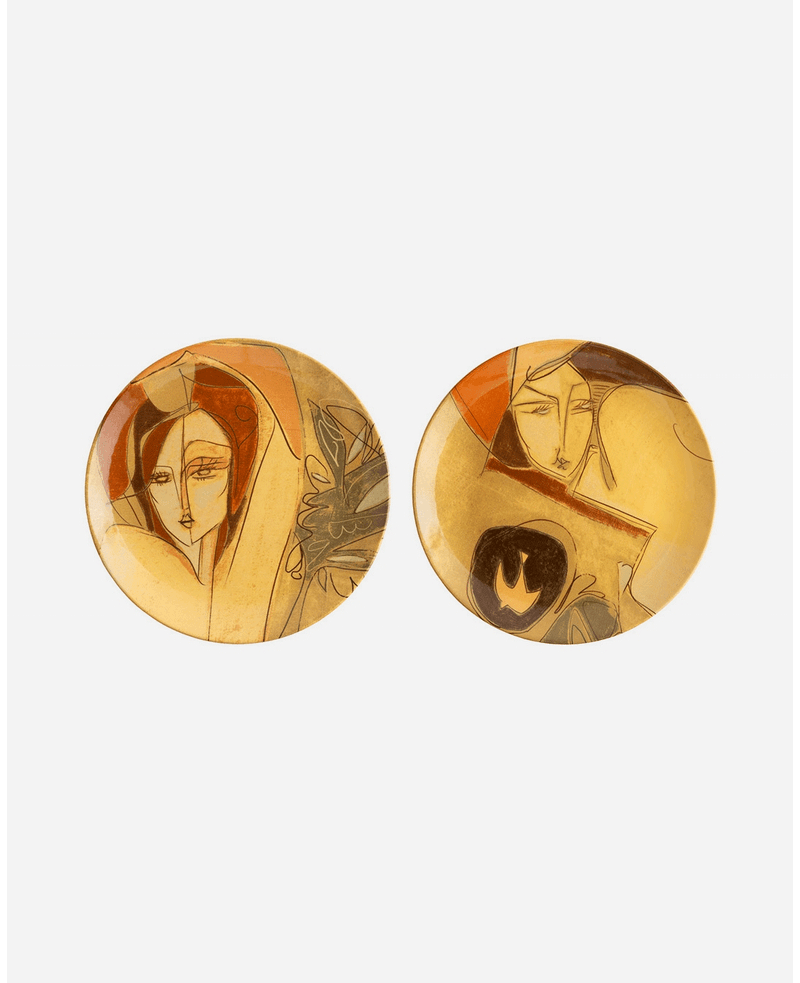 DecoraçãoPratos decorativosjogo de 2 pratos 31cm rostos cris conde amarelo casa bonita