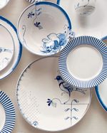 jogo de 6 pratos rasos 25,5cm blue bird white pip studio