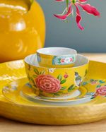jogo de 6 pratos rasos 27cm em porcelana blushing birds amarelo pip studio