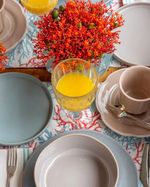 Mesa postaAparelho de jantarPratos Rasosjogo de 6 pratos rasos terra azul casa alegre